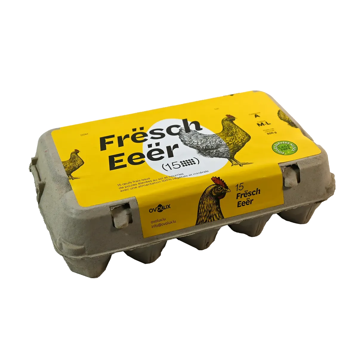 Eier aus Boden- und Freilandhaltung, sie stammen vorwiegend aus Luxemburg aber auch aus der Großregion.